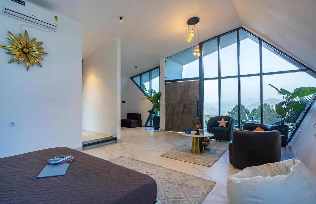 Saffronstays Luna Celeste Ranikhet villa includes free private parking and a patio with views of the mountain.